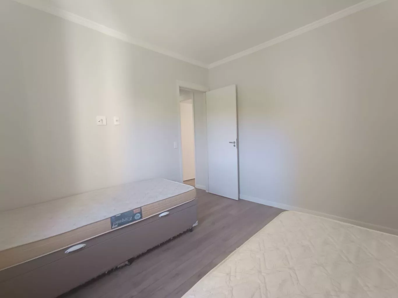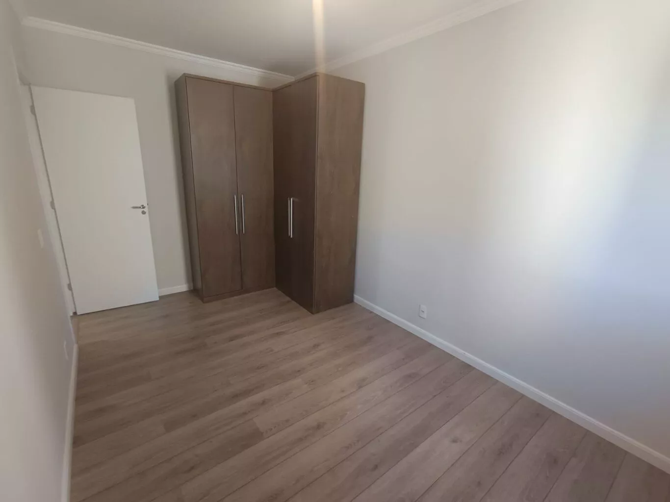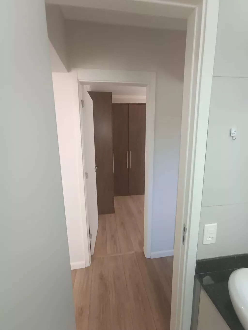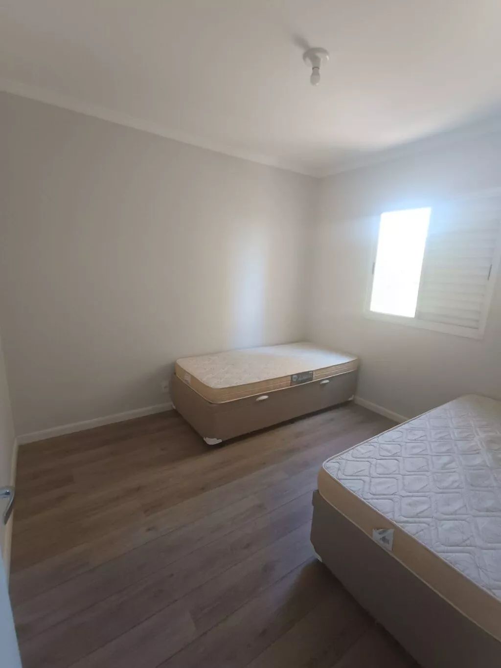 - Piso laminado na sala e nos dormitórios, além de porcelanato no banheiro.