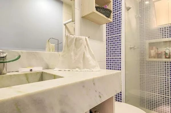 O apartamento está equipado com ar-condicionado na suíte e planejados de primeira linha em todos os ambientes, com móveis de laca nobre. A cozinha possui uma ilha com estação de tomadas e uma elegante cristaleira embutida no corredor. O piso de madeira cumaru proporciona um toque de sofisticação, enquanto o espelho nos banheiros e o contrapiso elevado garantem isolamento acústico de qualidade. Os banheiros são finalizados em mármore e porcelanato, acrescentando um toque de luxo.