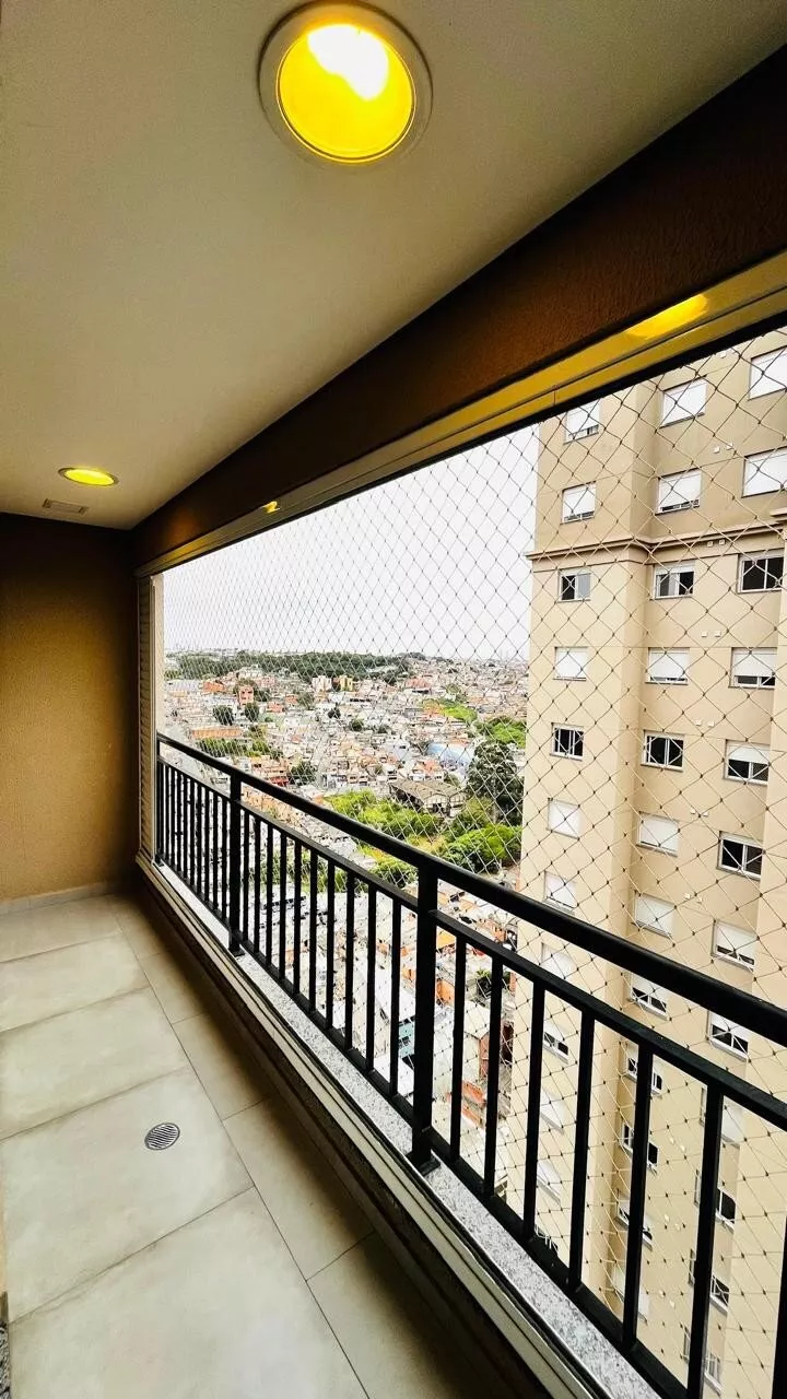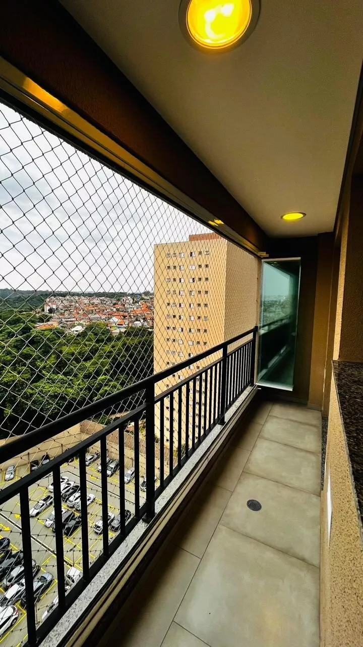 2 dormitórios sendo uma suíte, tem mais um banheiro e varanda com vidro.
