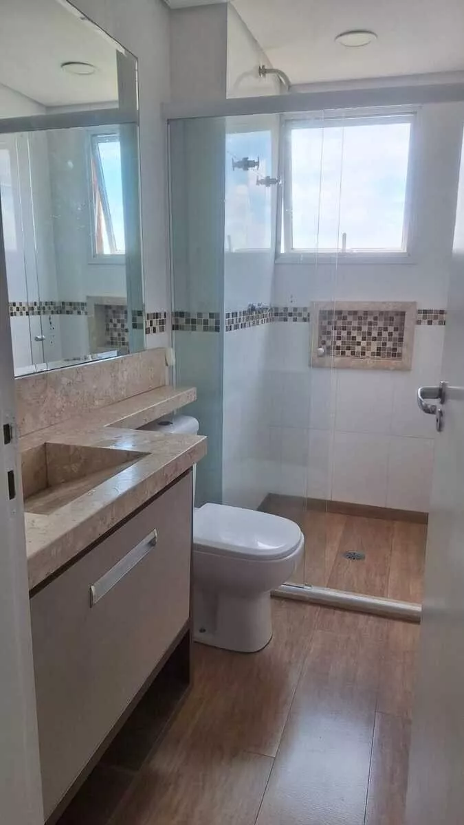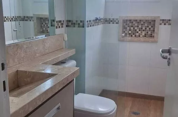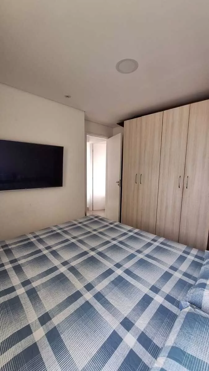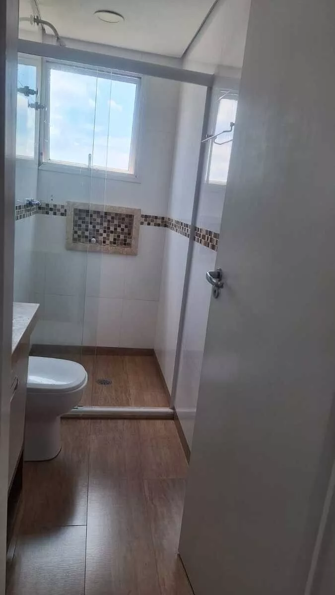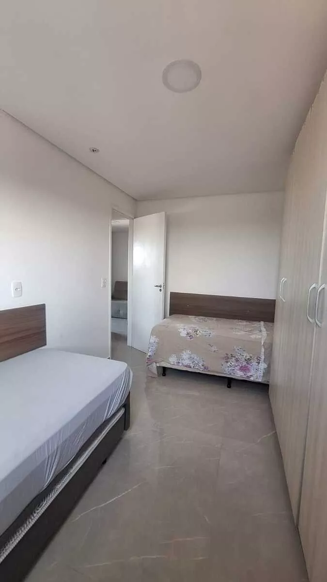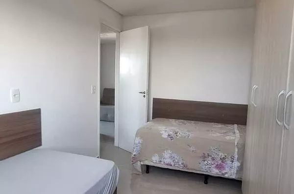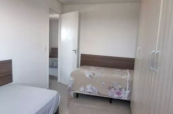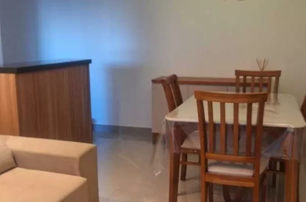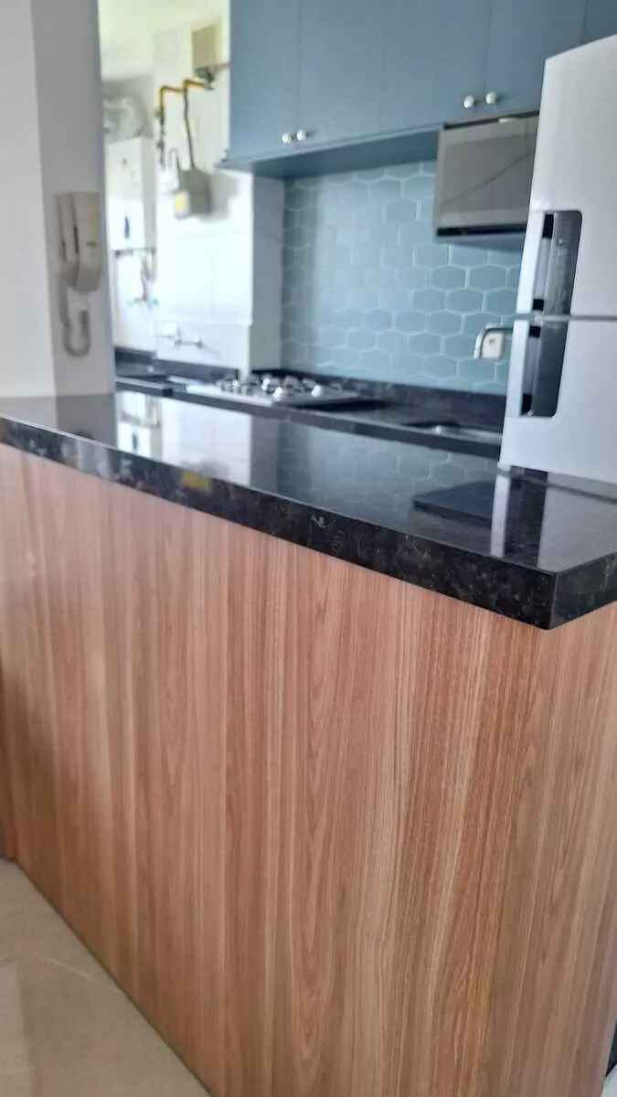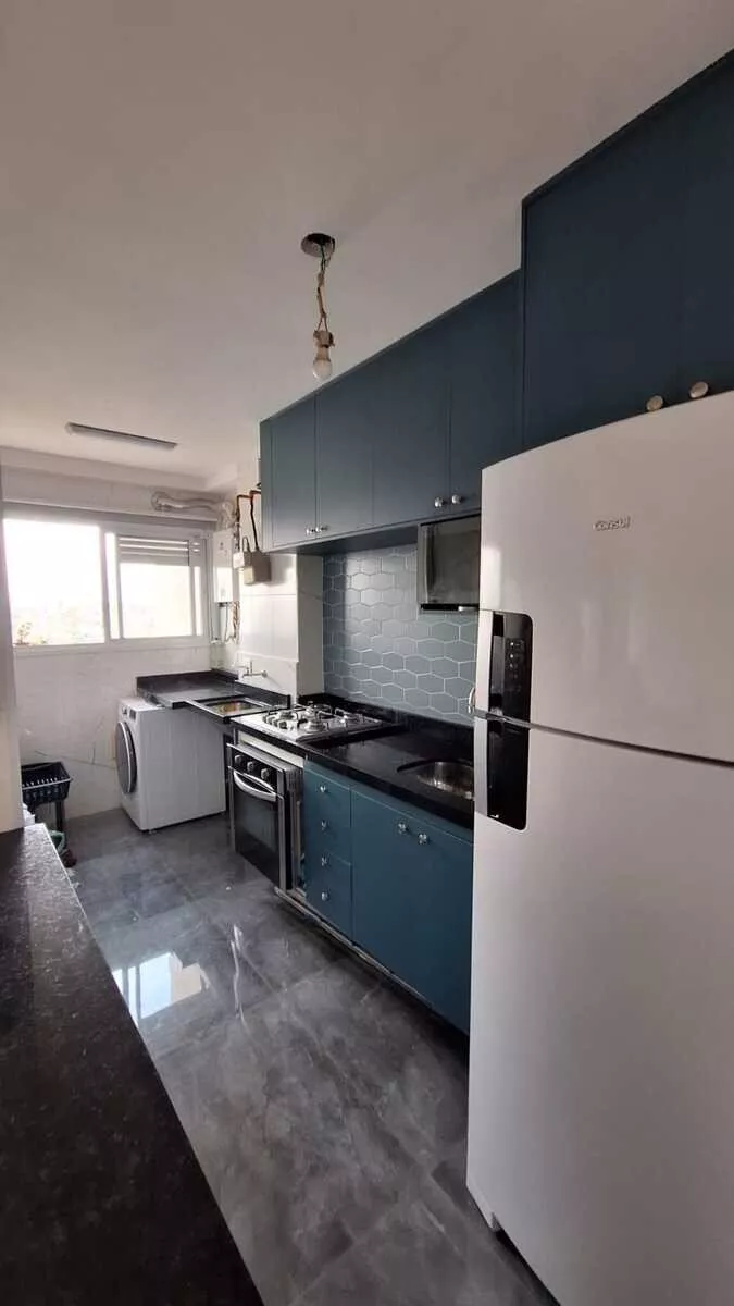 Com uma área total de 55,00 m², o apartamento foi recentemente reformado, apresentando detalhes de acabamento como sanca ilha e iluminação moderna. A cozinha está equipada com armários embutidos, cooktop e forno elétrico. Os guarda-roupas nos quartos e o home da sala permanecem no imóvel.